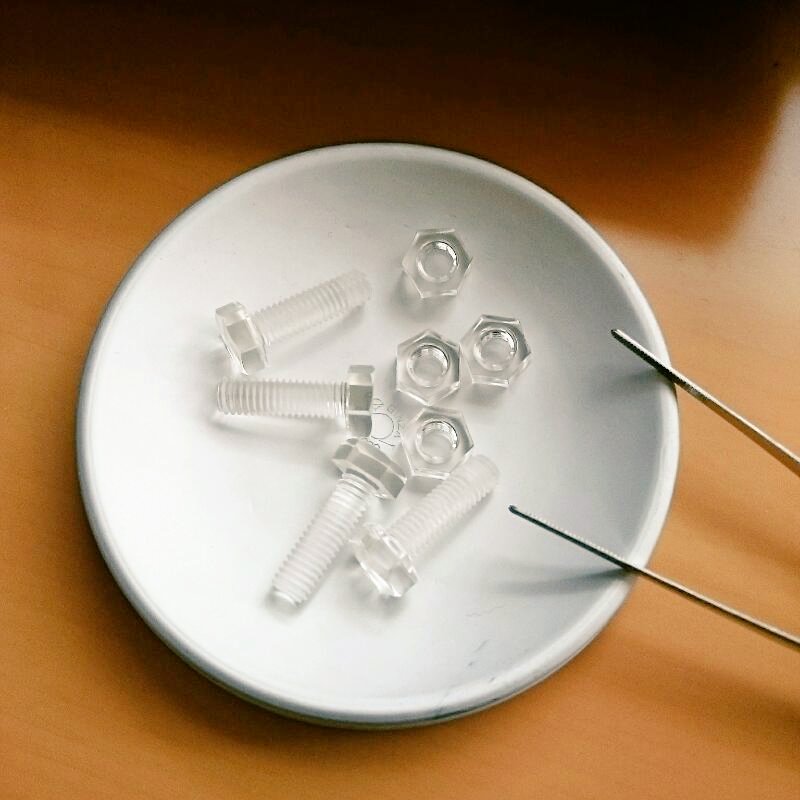 ポリカーボネート、という樹脂素材でできたボルトとナットです。
